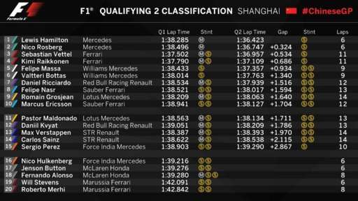 - Hamilton wins, Rosberg 2nd, Vettel 3rd, Raikkonen 4th, Massa 5th