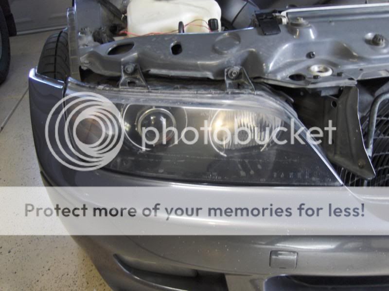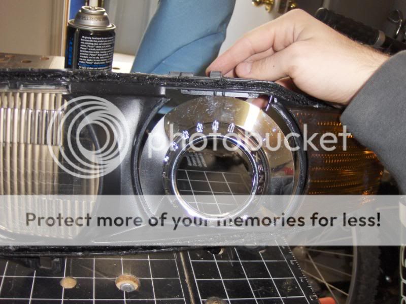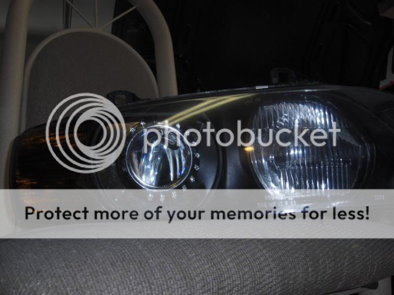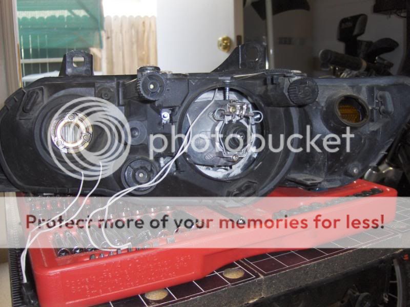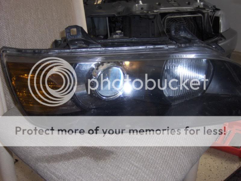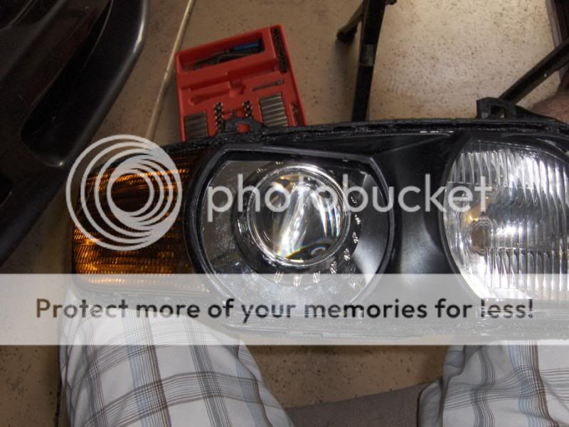 After you take off the clear plastic cover you have to take apart the back part with the heat gun. Here is what the projector looks like once I ripped off the angel eyes and the black that was around it seen in the previous picture.