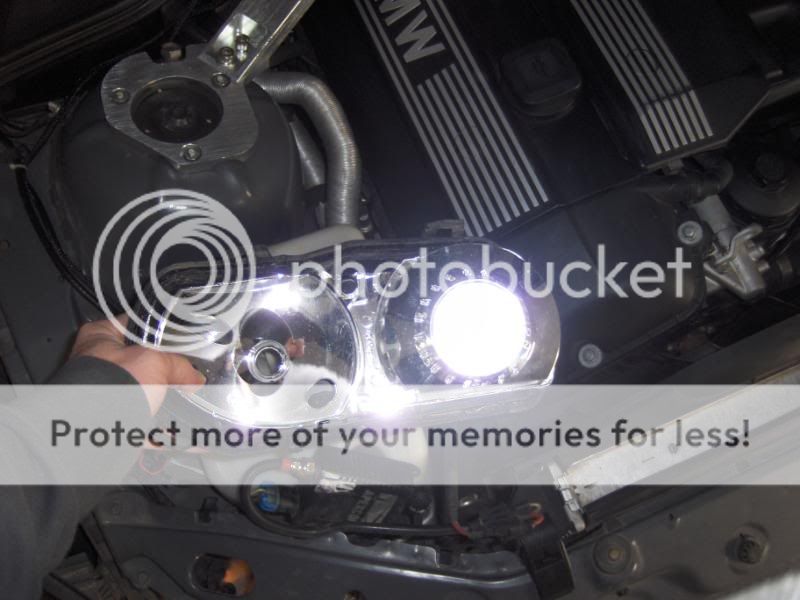 I am selling these to another member on this forum but I thought I would post up the pictures to show another route for those of you that want the stock look. I got these shrouds from the buyer, but they came off of a E46 and in the end look fairly stock.
