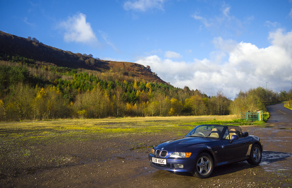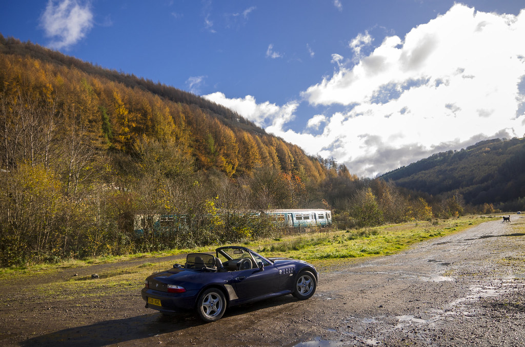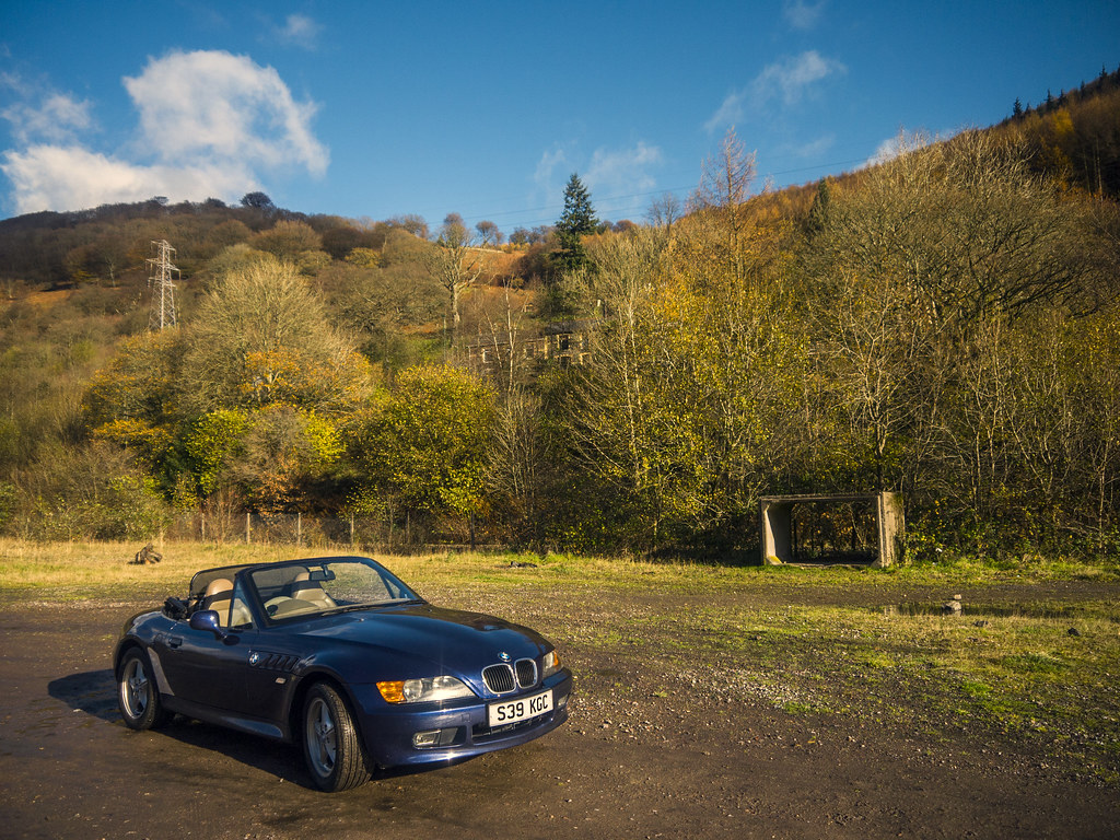 roof down from the start... very cold but sunny... trapper hat and driving gloves was order of the day.. and heated seats on warm and toast and heaters blowing hot on to my legs... short trip down to abertillery, and ebbw vale with a photo stop at cwm . Back home via brynmawr with another photo stop at trevor rowson park so lovely the colours this time of year...