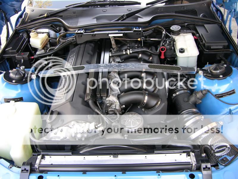 Simota filter, Dinan strut brace, New vanos, detailed engine bay.