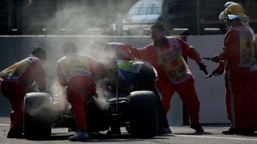 Here's a picture of the marshals doing a Laurel & Hardy as they tried time and time again to push Verstappen's car through the pitwall, to ironic cheers from the Chinese crowd in the main start-finish stand.